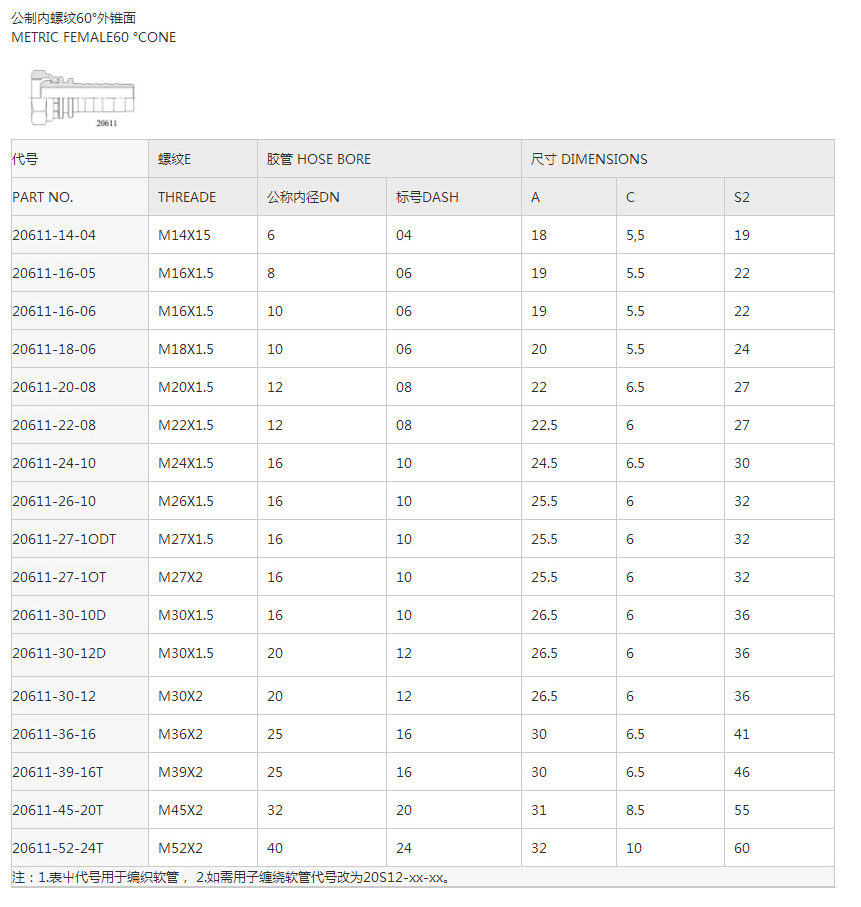 20611公制內(nèi)螺紋60°外錐面系列